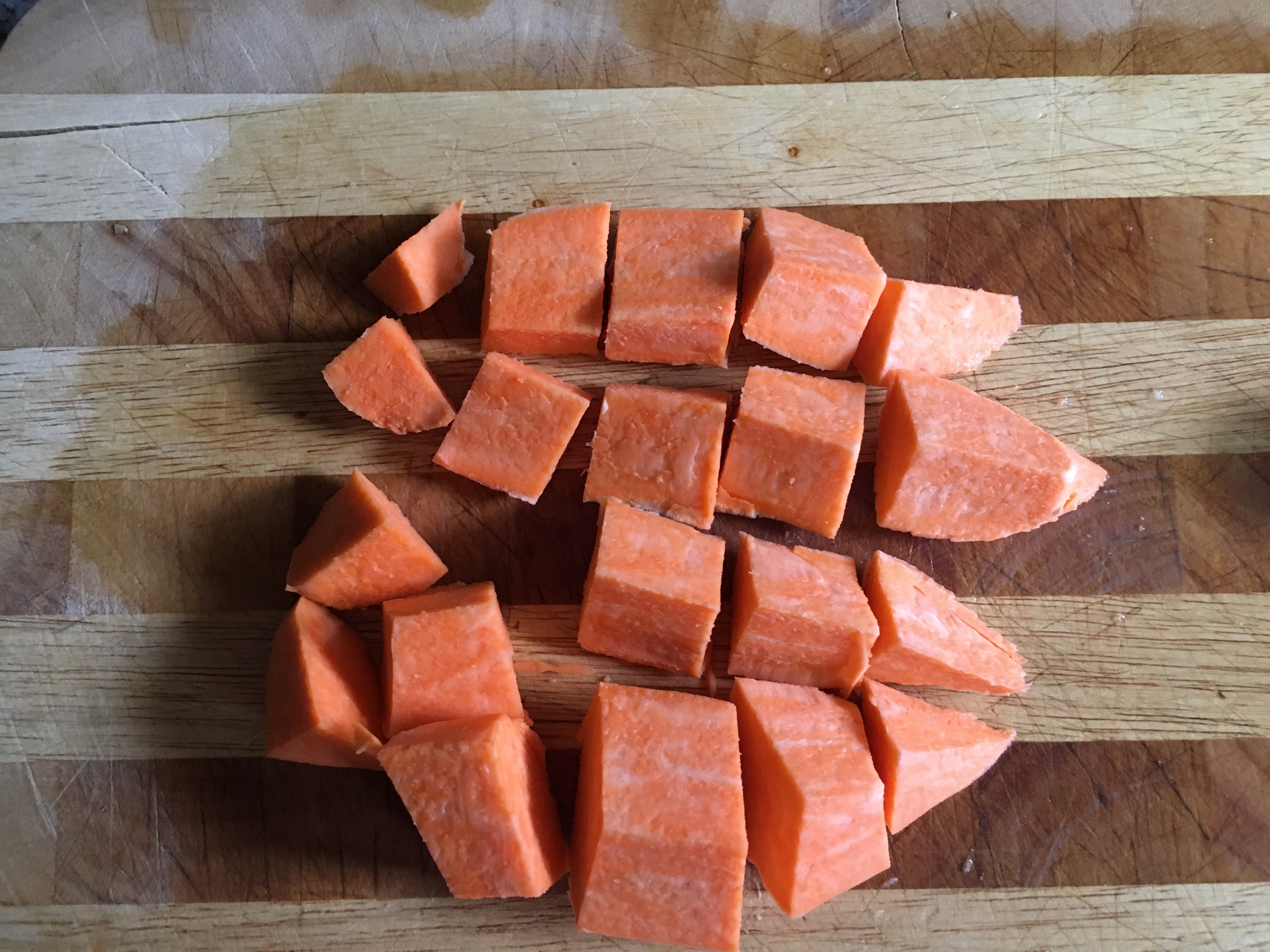 - Sweet potato (enough for your family, about 2 medium or large potatoes for a family of 4) peeled and cut into large 2 or 3 inch chunks