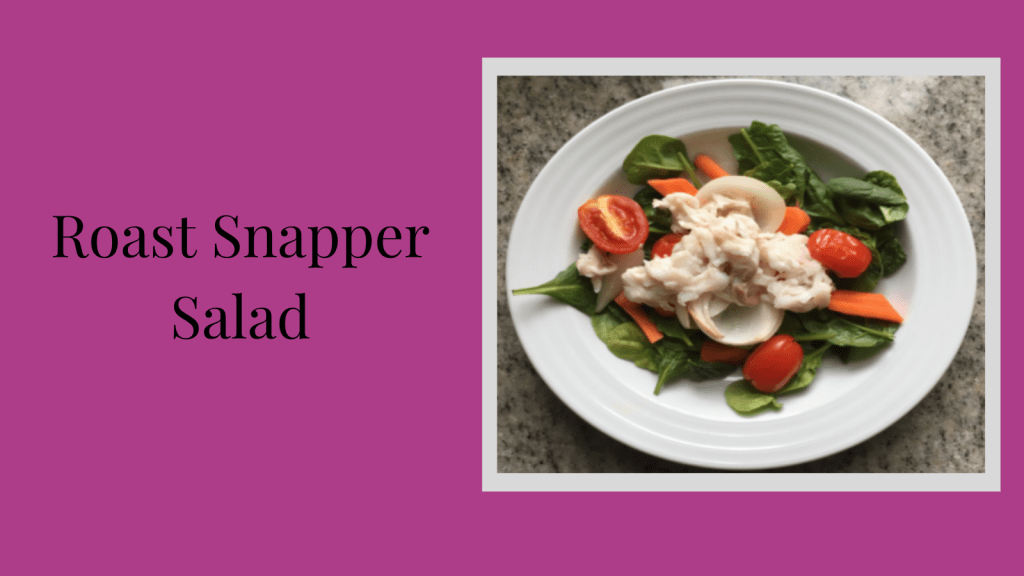 - 1 large whole fish cleaned (I used snapper this time, but works with the whole fish of your choice, i.e. bass or trout if it’s large enough to feed your family. If not or if you’re entertaining, you can double the recipe and roast two.)