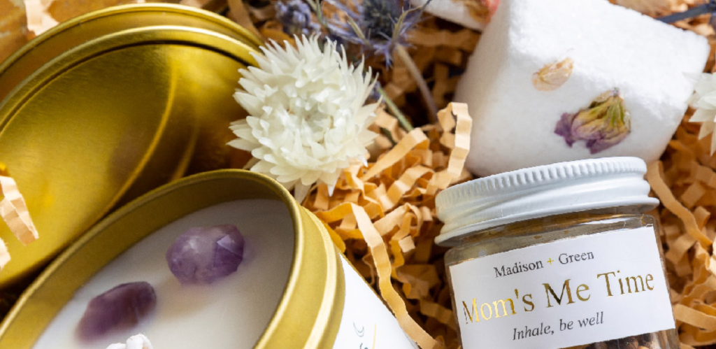 Gorgeous quarterly self-care baskets.